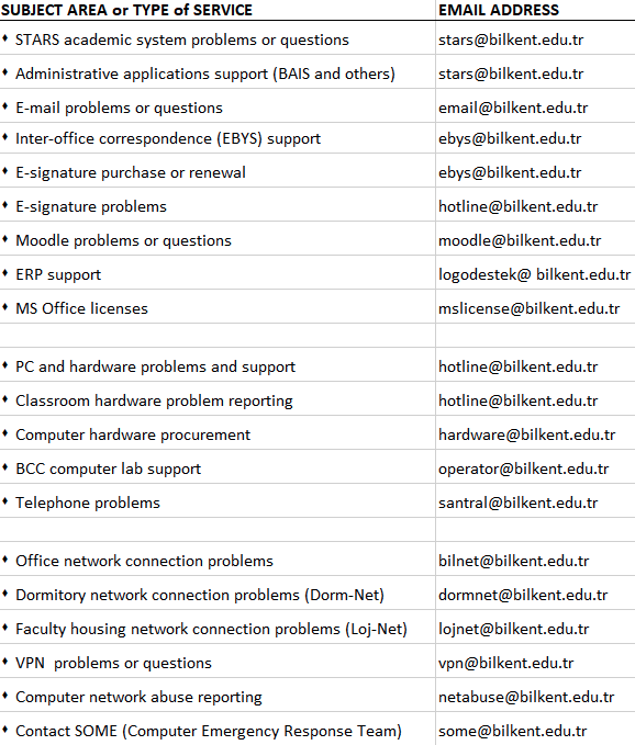BCC’s team of user support staff and technicians provide assistance on questions and problems relating to the topics and services provided in the list below.